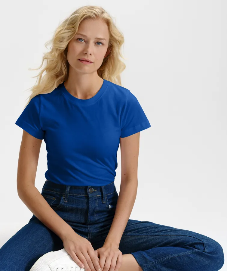 Γυναικείο απλό μπλουζάκι, μπλε ρουά, XS