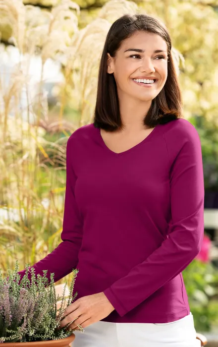 Το γυναικείο T-shirt με λαιμόκοψη V είναι κατασκευασμένο από βαμβάκι με πρόσμιξη ελαστάνης για μέγιστη άνεση όλη την ημέρα. Η ακριβής αναλογία είναι 95% βαμβάκι και 5% ελαστάνη.