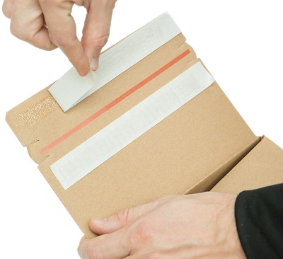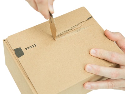 Τα περισσότερα κουτιά που χρησιμοποιούμε έχουν δύο αυτοκόλλητες λωρίδες και μία λωρίδα σχισίματος.